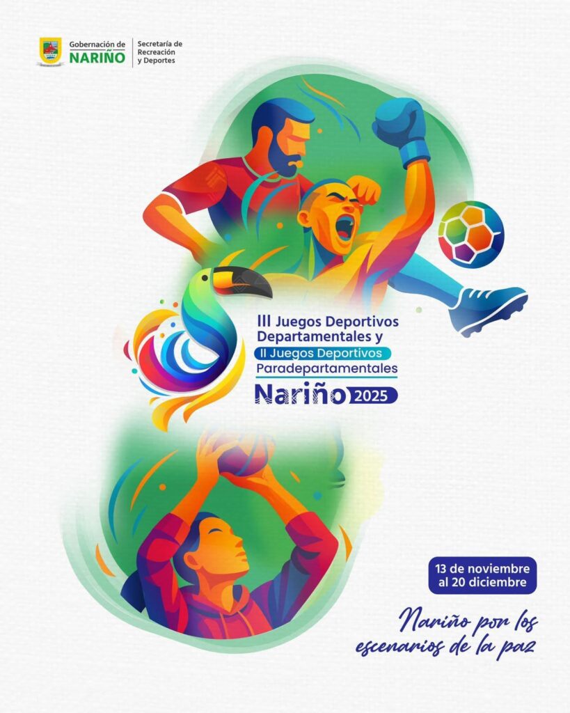 Con el liderazgo de la Secretaría de Recreación y Deporte, el departamento organiza los Juegos Deportivos Departamentales más amplios de su historia. Bajo el lema “Nariño por los caminos de la paz”, el certamen se inaugurará el 14 de noviembre en Pasto, con la participación de 8.000 deportistas provenientes de los 64 municipios.