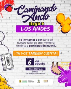 Creemos en el arte como herramienta para reconstruir memoria y construir paz. Por eso, realizaremos talleres participativos de Caminando Ando para crear los bocetos de los murales que llenarán de historia y color nuestros municipios.
