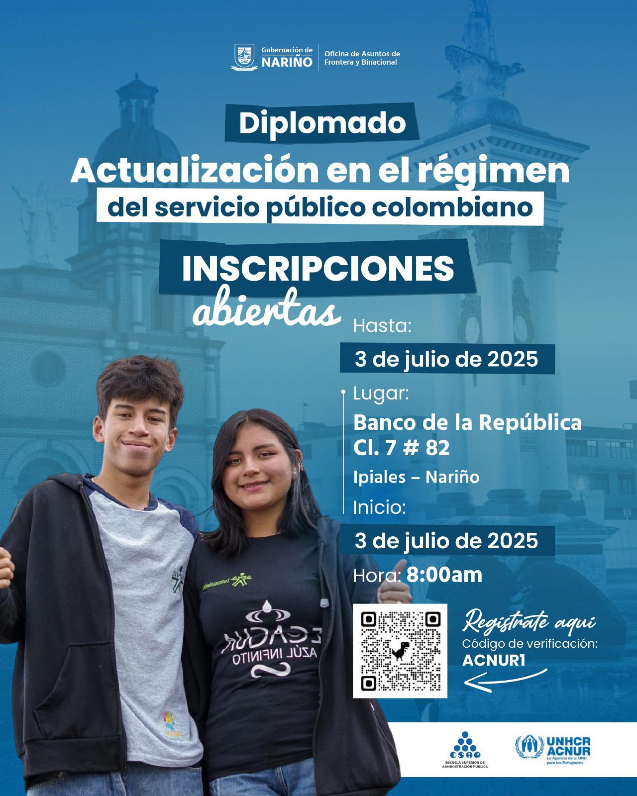 Últimos días para ser parte del Diplomado en Actualización del Régimen del Servicio Público Colombiano. Si estás en Ipiales o municipios cercanos, esta es tu oportunidad para fortalecer tu perfil y abrirte camino en el servicio público.