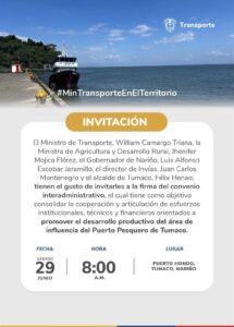 Mediante una articulación estratégica del nivel nacional, regional y local ponemos en marcha uno de los compromisos incluidos en el Plan de Desarrollo, orientado a impulsar el crecimiento productivo del área de influencia del Puerto Pesquero de Tumaco.