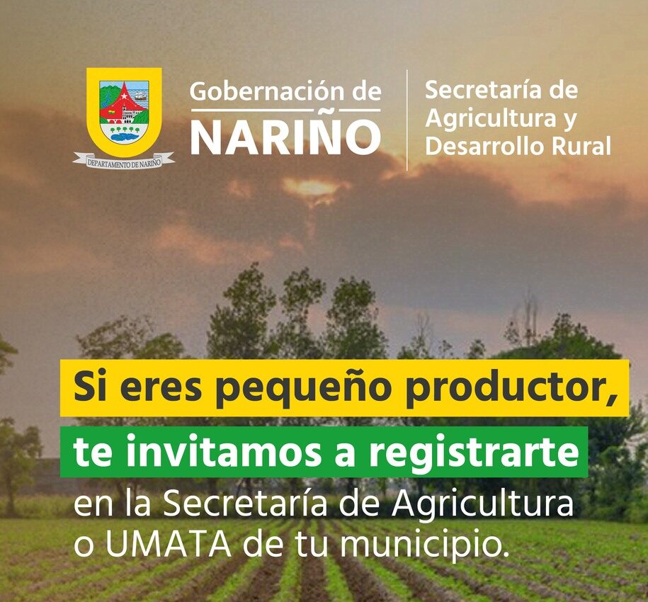 Invitamos a los Pequeños Productores del Departamento a realizar su registro como pequeño productor cercándose a la Secretaría De Agricultura Municipal o UMATA de su municipio.
