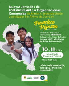 Nuevas Jornadas de Fortalecimiento a Organizaciones Comunales de Primer y Segundo Grado y entidades Sin Ánimo de Lucro en Francisco Pizarro.