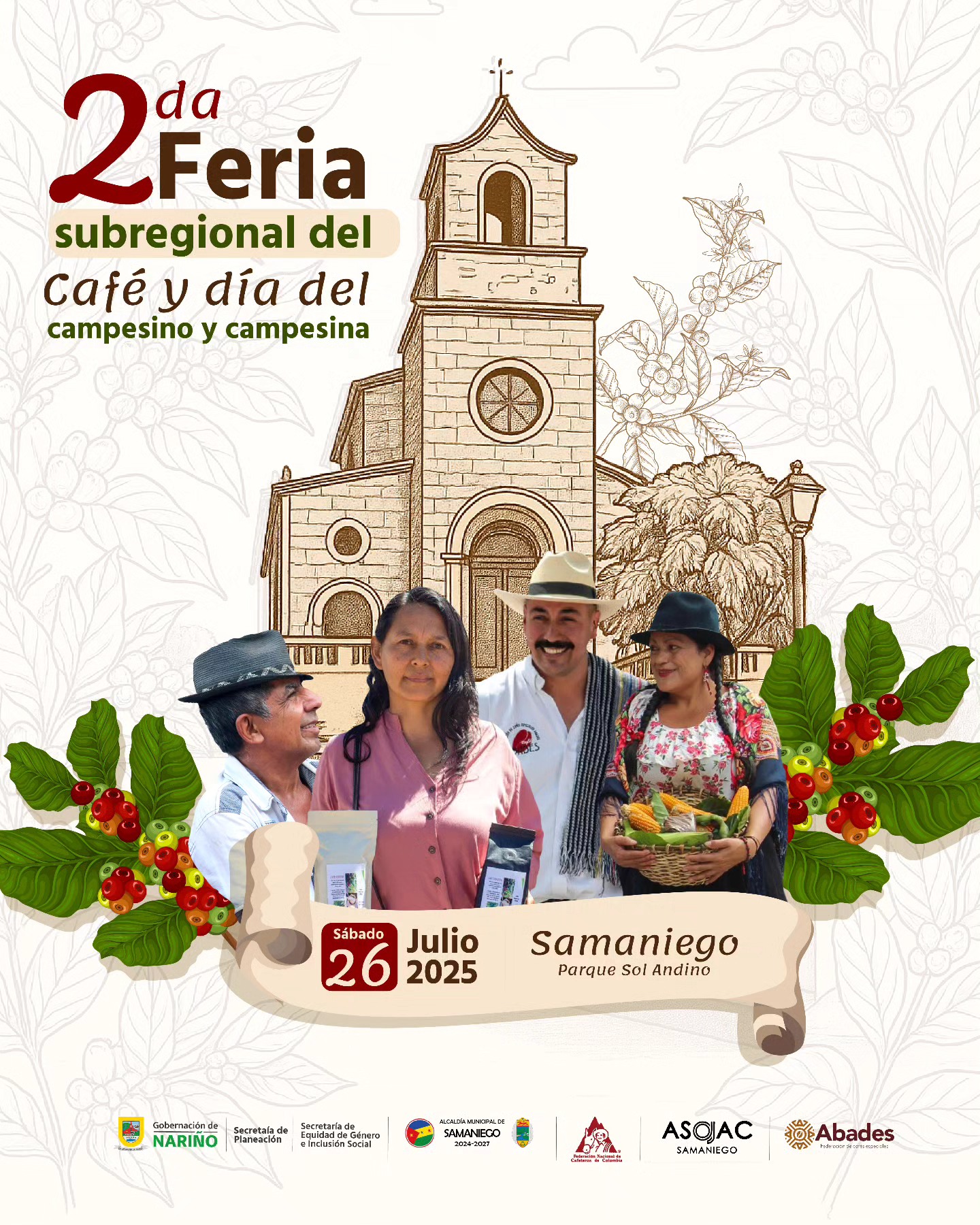 Este 26 de julio, Samaniego se llena de aroma a café con la 2da Feria Subregional del Café y el Día del Campesino y la Campesina. Un encuentro para honrar nuestras raíces, tradiciones y la fuerza del campo.