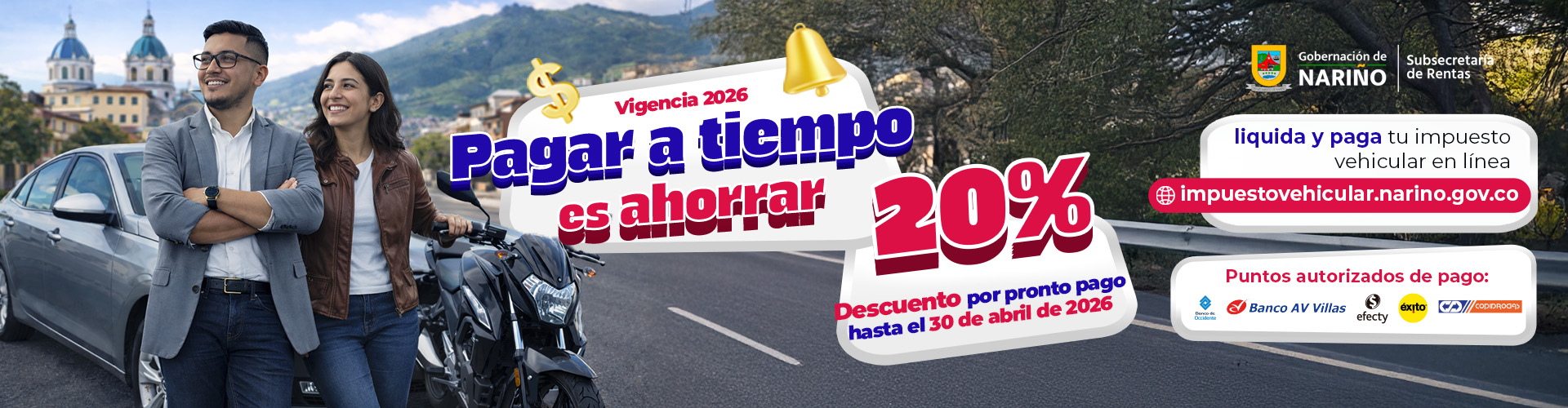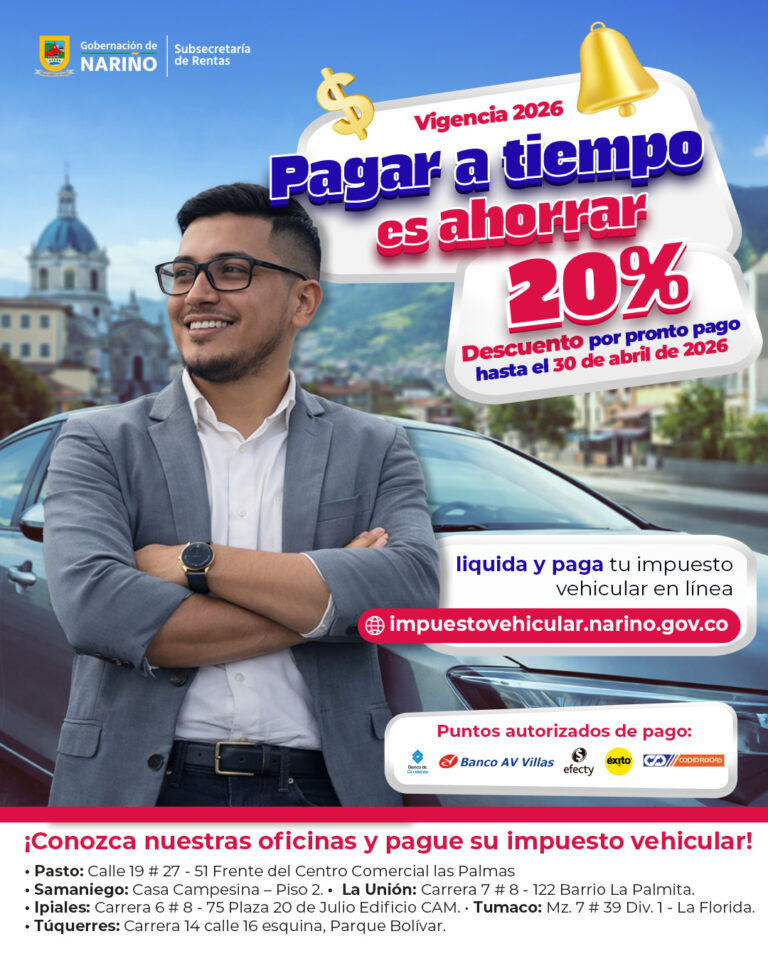 Nariño impulsa el ahorro ciudadano con incentivo del 20 % en el impuesto vehicular